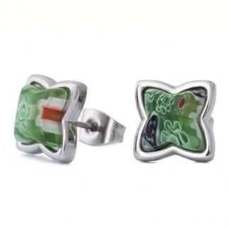STAINLESS STEEL EARRING WITH MURANO STONES IN FLOWER SHAPE IN S/S COLOR