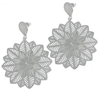 STAINLESS STEEL EARRING WITH FLOWER AND LEAVES SHAPE WITH CUTOUT PATTERN ALL IN S/S COLOR