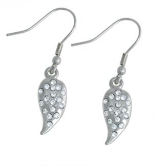 STAINLESS STEEL EARRING WITH LEAF SHAPE WITH CZ ALL IN S/S COLOR
