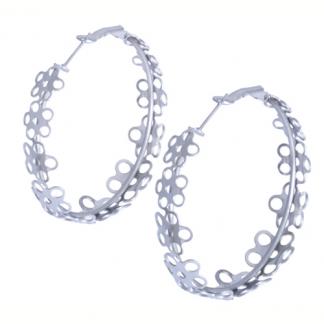 STAINLESS STEEL EARRING IN ROUND SHAPE WITH HOLLOW FLOWER ALL IN S/S COLOR