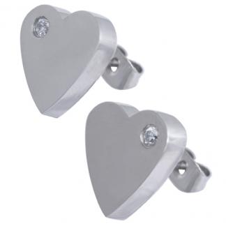 STAINLESS STEEL EARRING IN HEART SHAPE WITH CZ ALL IN S/S COLOR