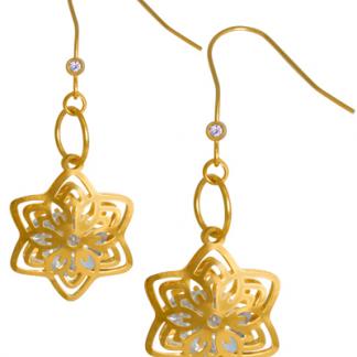 STAINLESS STEEL EARRING IN STAR SHAPE WITH CUTOUT WITH CZ INSIDE IN IPG COLOR