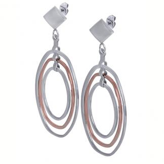 STAINLESS STEEL EARRING IN 3PCS OVALIN IP ROSE 2 TONE