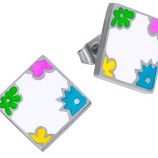 STAINLESS STEL EARRINGIN SQUARE SHAPE (WHITE)
