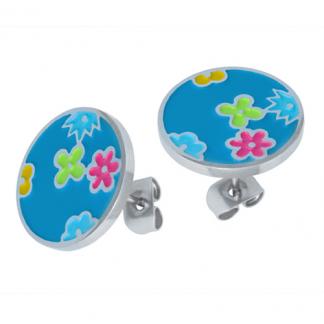 STAINLESS STEEL EARRING IN CIRCLE SHAPE (LIGHT BLUE)