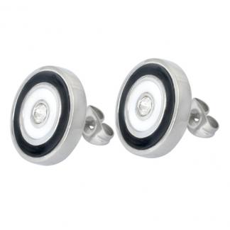 STAINLESS STEEL EARRING IN CIRCLE SHAPE( BLACK AND WHITE )WITH CZ
