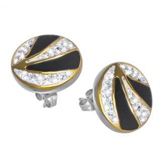 STAINLESS STEEL STUD EARRING WITH CZ IN CIRCLE IN IPG COLOR WITH BLACK