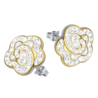 STAINLESS STEEL STUD EARRING WITH CZ IN FLOWER SHAPE IN IPG