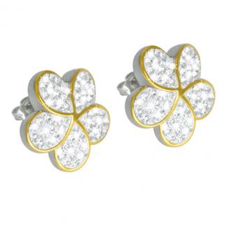 STAINLESS STEEL STUD EARRINGWITH CZ IN FLOWER SHAPE IN IPG COLOR