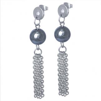 STAINLESS STEEL DROP EARRING WITH HEMETAIT BALL WITH CZ ALL IN S/S COLOR