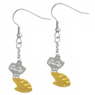 STAINLESS STEEL EARRINGS WITH CAT IN IPG TWO TONE (LIKE SE815)