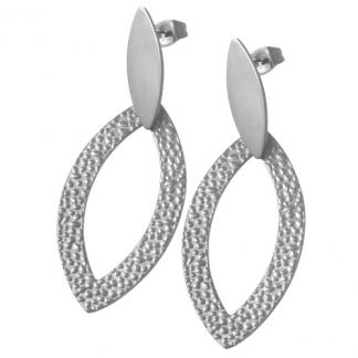 STAINLESS STEEL DROP EARRING IN LEAF SHAPE WITH TEXTURE (HAMMERED) ALL IN STEEL COLOR (LIKE SE933)