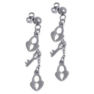 STAINLESS STEEL DROP EARRINGWITH 2 LOCK & 1 KEY ALL IN STEEL COLOR
