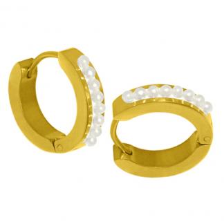 STAINLESS STEEL HUGGIE EARRING IN IPG COLOR WITH SYNTHETIC PEARL