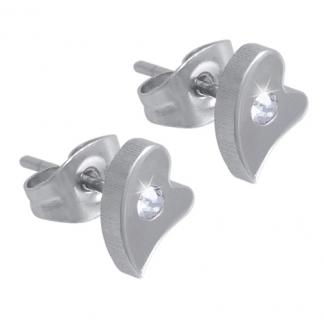 STAINLESS STEEL STUD EARRING IN HEART SHAPE WITH CZ ALL IN STEEL COLOR