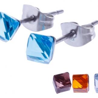 STAINLESS STEEL EARRINGS CRYSTAL IN SQUARE SHAPE WITH BUTTERFLY COVER