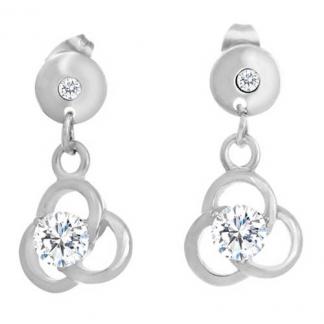 STAINLESS STEEL EARRING CIRCLE WITH 1 CZ WITH TRIPLE CIRCLE CHARM WITH CZ Set with SP567)