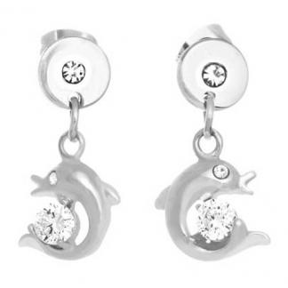 STAINLESS STEEL EARRINGS CIRCLE WITH 1 CZ WITH DOLPHIN CHARM WITH CZ(Set with SP879)