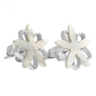 STAINLESS STEEL EARRINGS WITH STAR SHAPE WITH SHELL ALL IN S/S COLOR (Set with SN588)