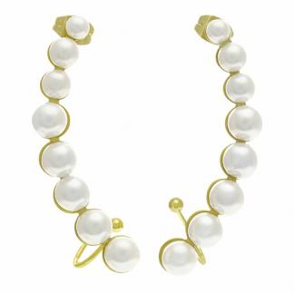 STAINLESS STEEL STUD DROP EARRING WITH SINGLE LINE OF 8 PEARLS ALL IPG COLOR