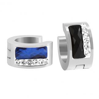 STAINLESS STEEL EARRING IN SS COLOR WITH CZ AND STONE IN BLACK OR BLUE COLOR