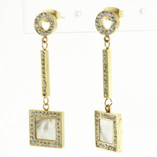 STAINLESS STEEL EARRING WITH WHITE SHEL AND WHITE CZ
