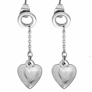 STAINLESS STEEL EARRING WITH HEART CHARMS ALL IN S/S