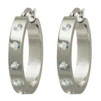 STAINLESS STEEL EARRING ROUND SHAPE WITH 5 PCS CZ ALL IN S/S COLOR