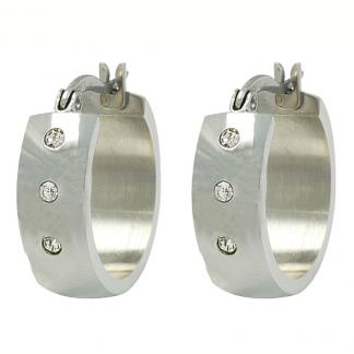 STAINLESS STEEL HUGGIE EARRING WITH 3 CZ ALL IN S/S COLOR