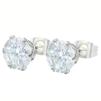 STAINLESS STEEL EARRING WITH ROUND CZ ALL IN S/S COLOR