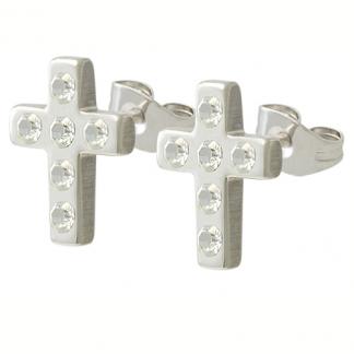 STAINLESS STEEL EARRING IN CROSS SHAPE WITH CZ ALL IN S/S COLOR