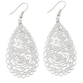 STAINLESS STEEL EARRING IN ROSE SHAPE WITH HOLES ALL IN S/S COLOR