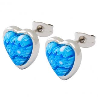 STAINLESS STEEL EARRING IN HEART SHAPE WITH BLUE MURANO STONE IN S/S COLOR
