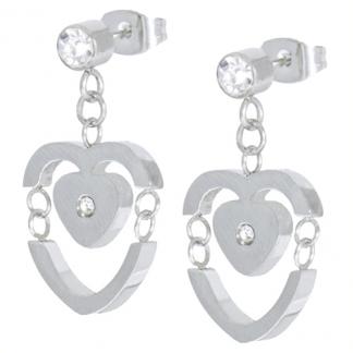 STAINLESS STEEL EARRING WITH HEART & CZALL IN S/S COLOR