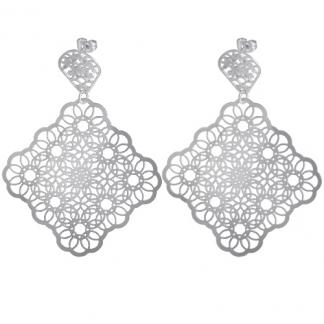 STAINLESS STEEL EARRING IN SQUARE SHAPE WITH CIRCLE PATTERNALL IN S/S COLOR
