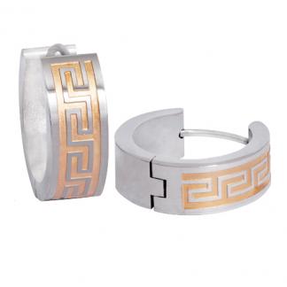 STAINLESS STEEL HUGGIE EARRING IN ROUND SHAPE IPG AND SANDBLAST WITH S PATTERNIN IPG TWO TONES