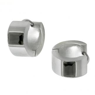 STAINLESS STEEL HUGGIE EARRING WITH BLACK CRYSTAL ALL IN S/S COLOR