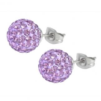 STAINLESS STEEL EARRINGWITH PURPLE CZ BALL