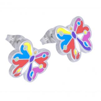 STAINLESS STEEL PIERED EARRING IN BUTTERFLY SHAPE