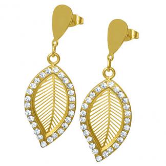 STAINLESS STEEL LEAF EARRING IN ALL S/S COLOR WITH CZ(LIKE SE769)