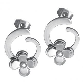 STAINLESS STEEL EARRING WITH MOVABLE FLOWER ALL IN S/S COLOR