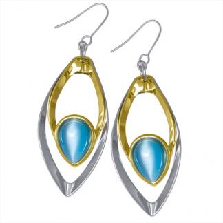 STAINLESS STEEL EARRING WITH BLUE CAT EYE STONE IN IPG TWO TONE