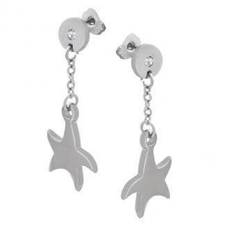 STAINLESS STEEL EARRING IN DROP STAR SHAPE WITH CZ ALL IN S/S COLOR