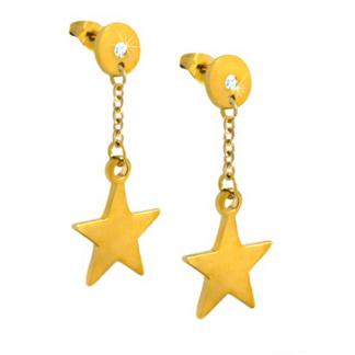 STAINLESS STEEL EARRING IN DROP STAR SHAPE WITH CZ IN IPG COLOR