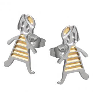 STAINLESS STEEL EARRING IN SMILING GIRL SHAPE IN IPG TWO TONE
