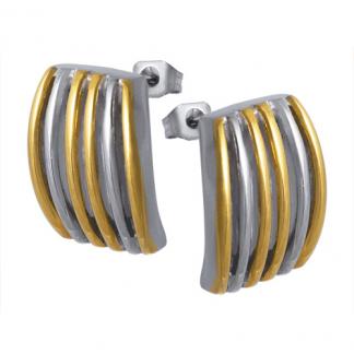 STAINLESS STEEL STUD EARRING WITH STRIP PATTERN IN IPG TWO TONE [CASTED ITEM]
