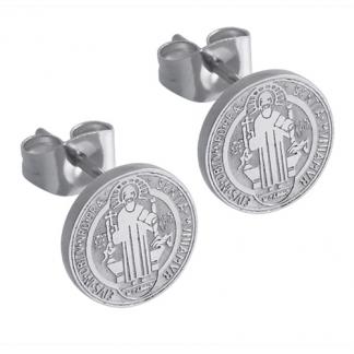 STAINLESS STEEL STUD EARRING IN CIRCLE SHAPE WITH SAN BENITOALL IN STEEL COLOR (ONLY ONE SIDE /PATTERN LASERED)