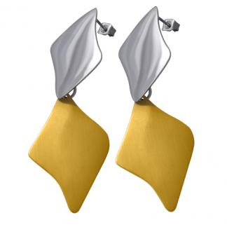 STAINLESS STEEL DROP EARRING WITH TWO IRREGULAR RHOMBUS IN IPG TWO TONE