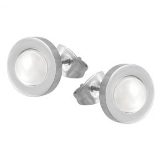 STAINLESS STEEL STUD EARRING IN ROUND SHAPE WITH SYNTHETIC PEARL ALL IN STEEL COLOR