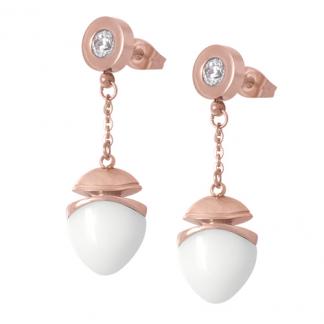 STAINLESS STEEL DROP EARRING ALL IN IP ROSE COLORWITH CZ WITH AMETHYST OR WHITE CERAMIC